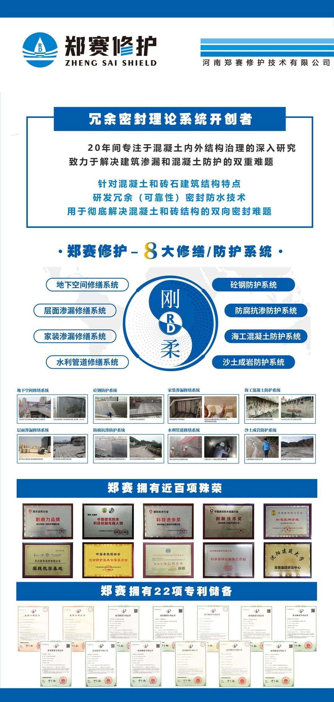鄭賽修護(hù)-中國治砼到合修護(hù)系統(tǒng)開創(chuàng)者,冗余(可靠性)密封防水技術(shù)發(fā)明者,致力于打造中國混凝土治理第一品牌,深入研究建筑內(nèi)防水技術(shù),混凝土缺陷治理技術(shù),防水材料研發(fā)。解決建筑滲漏和混凝土/磚石結(jié)構(gòu)滲漏防護(hù)的雙重難題,發(fā)明材料背水一噴靈可背水面帶水帶壓施工,業(yè)務(wù)遍布全球各地。