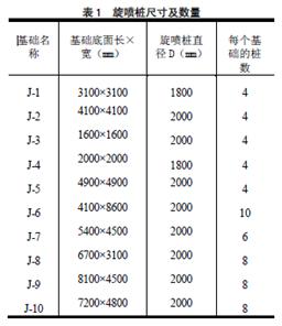 采用旋噴樁處理后,房屋沉降等到控制。旋噴樁尺寸及數量詳見表1 所示。
