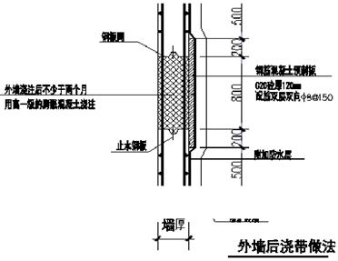 ?、俅┑叵陆Y(jié)構(gòu)的外墻構(gòu)件必須做防水處理(如下圖):