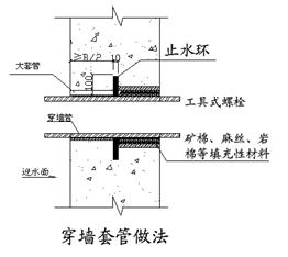?、谕克⒎浪畬訒r,穿樓板時立管部位均做預(yù)留套管,等立管安裝好后,管壁與套管間填瀝青麻絲,油膏嵌縫;以確保防水質(zhì)量。