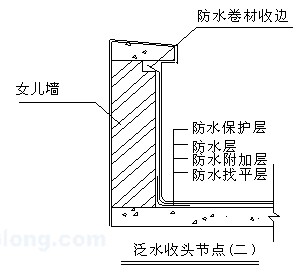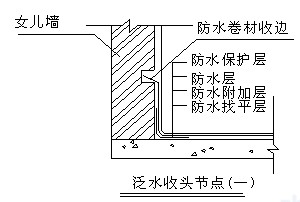 ?、鄹郊訉邮┕ぃ捍鶎犹幚韯└稍锖?,先對女兒墻、水落口、管根、檐口、陰陽角等細部先做附加層,再鋪貼大面卷材。陰陽角圓弧半徑R=30mm~50mm(陽角可做成R=30mm)。鋪貼在立墻上的卷材高度不小于250mm。