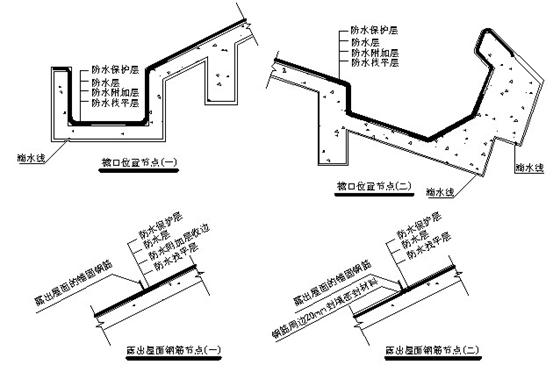 管道根部直徑500mm范圍內,找平層應抹出高度不小于30mm圓臺,或在保護層上做圓臺,周邊留20mm×20mm凹槽,用密膏封膏封嚴。