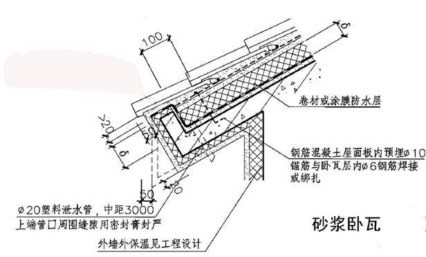2)最薄處20mm厚1︰3水泥砂漿臥瓦層;