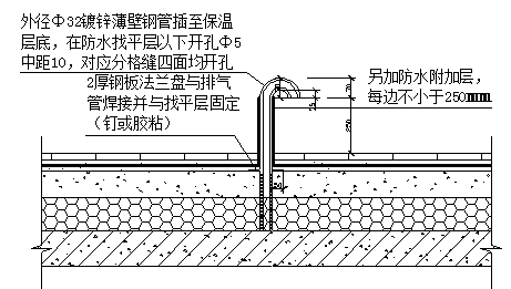 3)出屋面的管根部,用細(xì)石混凝土填塞密實(shí),使管子固定牢靠。