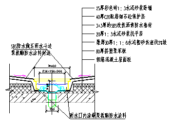 (4)找平層。防水找平層為20mm厚1∶3水泥砂漿。