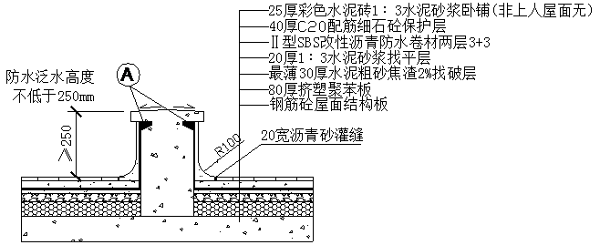 ①基層與突出屋面結(jié)構(gòu)的交接處和基層的轉(zhuǎn)角處,均應(yīng)做成圓弧形,且整齊平整。