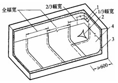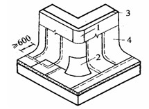 1—轉(zhuǎn)折處卷材加固層;2—角部加固層;3—找平層;4—卷材