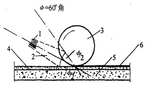 1—噴嘴;2—火焰;3—SBS防水卷材;4—水泥砂漿;5—混凝土層;6—SBS防水層