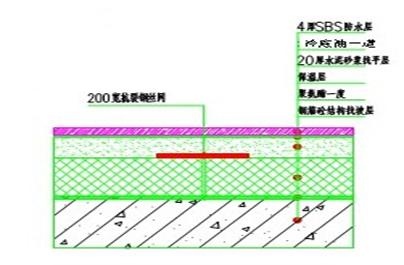 圖5 有保溫層屋面保溫層抗裂鋼絲網(wǎng)剖面