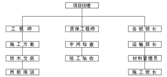?。?)質(zhì)量管理體系。項目經(jīng)理是工程質(zhì)量第一責任人,質(zhì)檢組及專業(yè)技術(shù)人員專職施工過程中的監(jiān)督與檢查,嚴格按照ISO9001-2000標準及公司《管理手冊》標準進行施工管理。