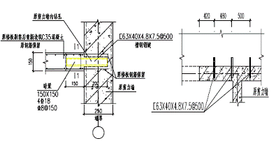 與剪力墻連接部位,為了解決新澆注樓板的抗剪,在剪力墻部位每隔半米做槽鋼銷鍵,見圖5.