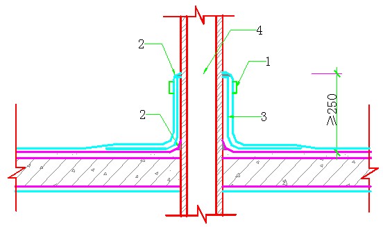 節(jié)點(diǎn)附加層應(yīng)選用氯丁橡膠改性瀝青防水涂料,要求固體含量≥43%,延伸≥4.5mm,耐熱度為80℃時(shí)5h無流淌、起泡。