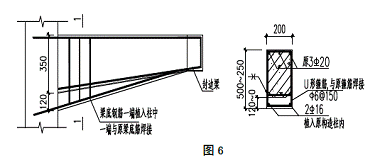 5)外走廊懸挑梁承載力不足,采用加大截面法進(jìn)行加固。如圖6。