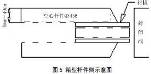 該鋼結(jié)構(gòu)工程采用一個中心節(jié)點分支出多個封閉接頭與對應(yīng)的箱型桿件對接而成(如圖3所示),為了保證焊縫部位的兩邊母材在施焊后完全熔合,焊接前對預(yù)制的箱型桿件采取開坡口處理,并在箱型桿件內(nèi)側(cè)都預(yù)先點焊好4mm的襯板(如圖4、圖5所示),現(xiàn)場焊接主要是采用CO2氣體保護焊。此種焊接方法受環(huán)境影響因素較大,易造成氣孔及未熔合等缺陷,箱型桿件端部轉(zhuǎn)角處存在焊接死角,且由于桿件在窄面存在焊接行程距離太短易形成缺陷;在實際檢測當(dāng)中發(fā)現(xiàn)箱型桿件襯板與箱型桿件內(nèi)壁間隙過大易造成實際焊接當(dāng)中的焊縫根部缺陷。通過現(xiàn)場實際檢測,發(fā)現(xiàn)焊接常檢測出的缺陷有密集性氣孔、不規(guī)則狀夾渣、根部的未焊透和裂紋等缺陷。
