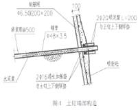 有土釘處沿橫向配置2Φ16同長加強筋(縱向配置2Φ20,L=200mm)。如圖4所示。