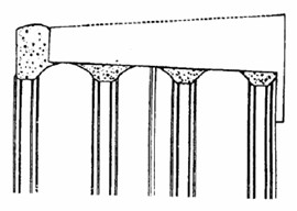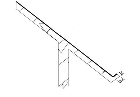 基層現突出屋面結構(女兒墻、山墻壁、天窗壁、變形縫、煙囪等)和交接處和基層的轉角處,找平層均應做成圓弧半徑100~150mm。所有斜屋面下檐口須做成如圖1。