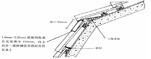 脊瓦在兩坡面瓦上的搭蓋寬度,每邊不小于40mm。