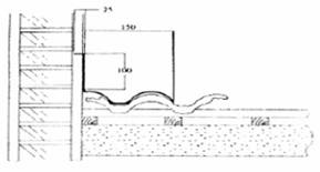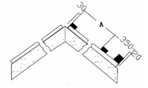 ③按照彈線位置、灰餅的厚度,嵌38mm×15~25mm的分格條,所嵌砂漿成60 度設置、上口留10~15mm。