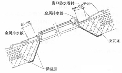 突出屋面的墻或煙囪的側面瓦伸入泛水寬度不小于50mm。