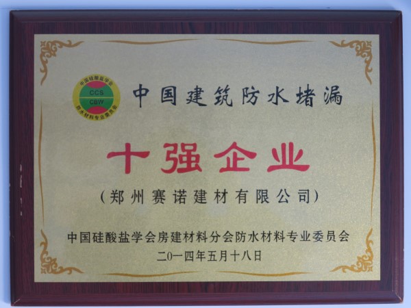 中國(guó)建筑防水堵漏十強(qiáng)企業(yè)