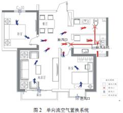 即通常所說(shuō)的雙向流空氣置換系統(tǒng)。該系統(tǒng)由一組強(qiáng)制送風(fēng)系統(tǒng)和一組強(qiáng)制排風(fēng)系統(tǒng)組成。與自然送風(fēng)相比,強(qiáng)制排風(fēng)系統(tǒng)的區(qū)別主要在于新風(fēng)借助送風(fēng)系統(tǒng)的管道進(jìn)入室內(nèi)。新風(fēng)的流動(dòng)方向可以根據(jù)特定要求自由設(shè)計(jì)和布置,居室內(nèi)的空氣得到更好的組織。同時(shí),新風(fēng)在進(jìn)入居室之前可以按要求進(jìn)行過(guò)濾、滅菌和預(yù)熱等。帶熱回收裝置的新風(fēng)系統(tǒng),在擁有強(qiáng)制送風(fēng)設(shè)備功能的同時(shí),用排風(fēng)對(duì)新風(fēng)進(jìn)行預(yù)熱(冷),從而達(dá)到節(jié)能效果。熱回收新風(fēng)系統(tǒng)在通風(fēng)換氣的同時(shí)還具有能量回收功能,避免能量損失。但其一般能耗較大;同時(shí),由于熱交換器主機(jī)的使用壽命較短(當(dāng)前的衛(wèi)生間狀況下一般使用壽命為2-5年),且該系統(tǒng)的廚房和衛(wèi)生間不宜設(shè)置排風(fēng)口,否則極易造成“串味”。