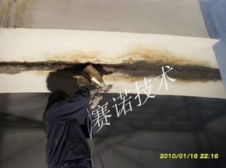 3)、采用噴涂法施工,防水層厚度均勻,無(wú)接縫,并可根據(jù)施工要求調(diào)節(jié)材料的厚度,既適合局部修復(fù)處理,也可以大面積施工。